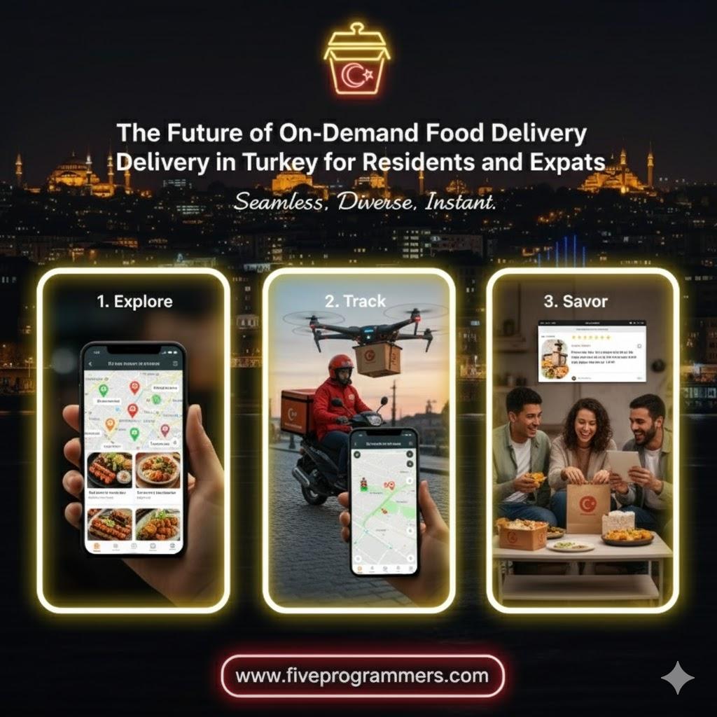 This article explores the evolution and future of on-demand food delivery in Turkey, highlighting the latest technologies, market trends, and how innovators like Five Programmers are shaping the digital dining landscape.
