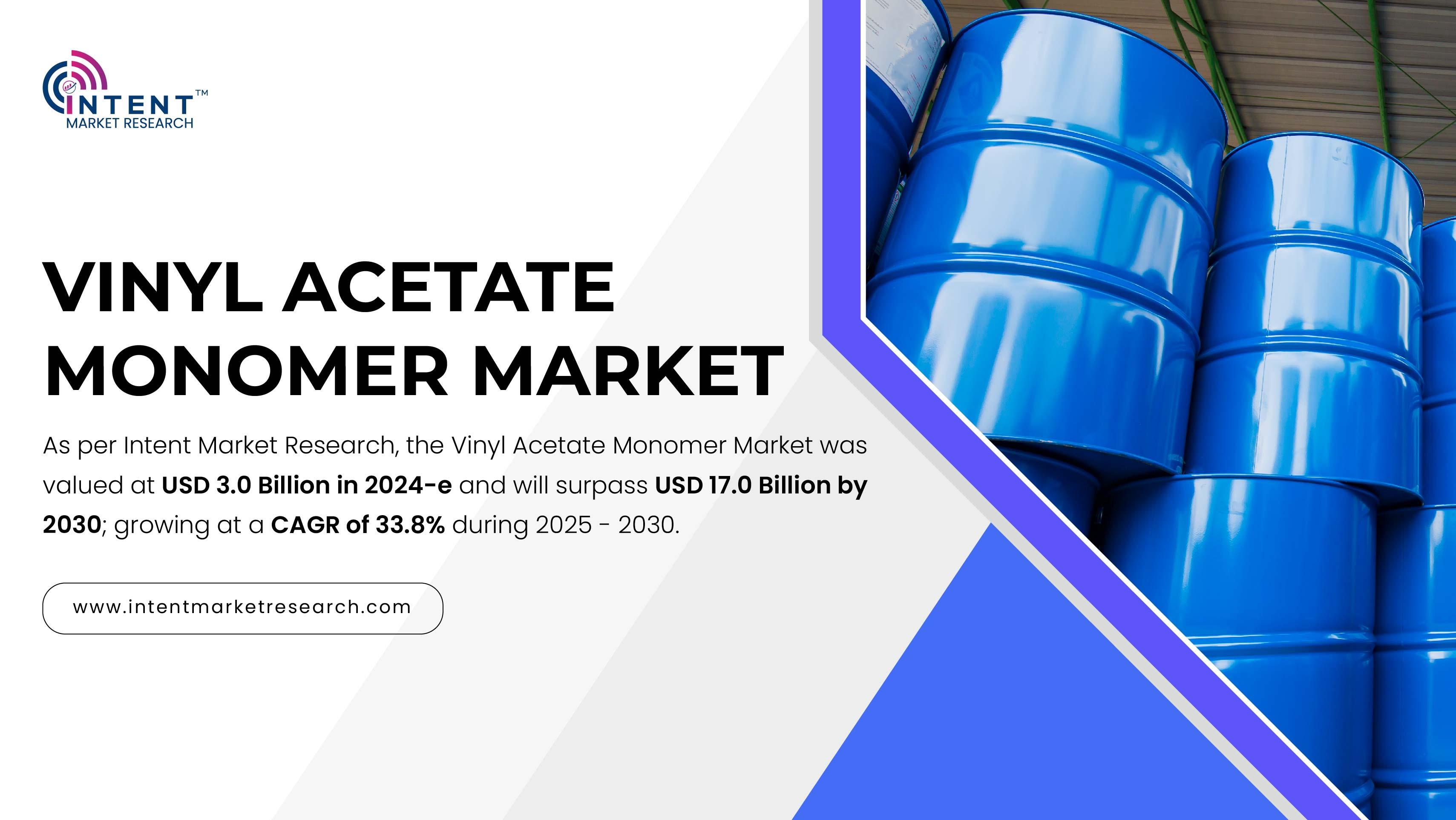 "As per Intent Market Research, the Vinyl Acetate Monomer Market was valued at USD 3.0 Billion in 2024-e and will surpass USD 17.0 Billion by 2030; growing at a CAGR of 33.8% during 2025 - 2030.