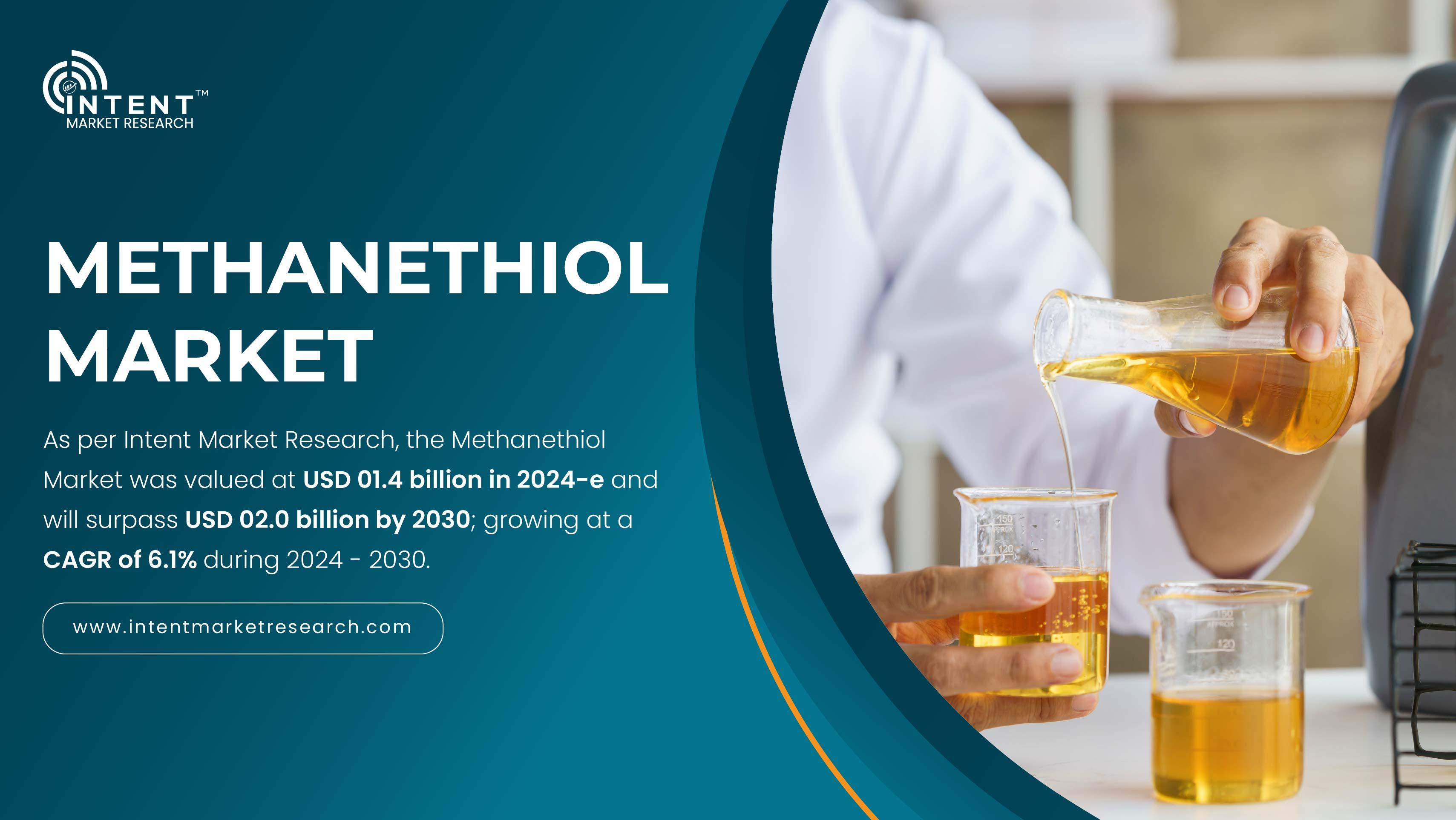 "As per Intent Market Research, the Methanethiol Market was valued at USD 01.4 billion in 2024-e and will surpass USD 02.0 billion by 2030; growing at a CAGR of 6.1% during 2024 - 2030.