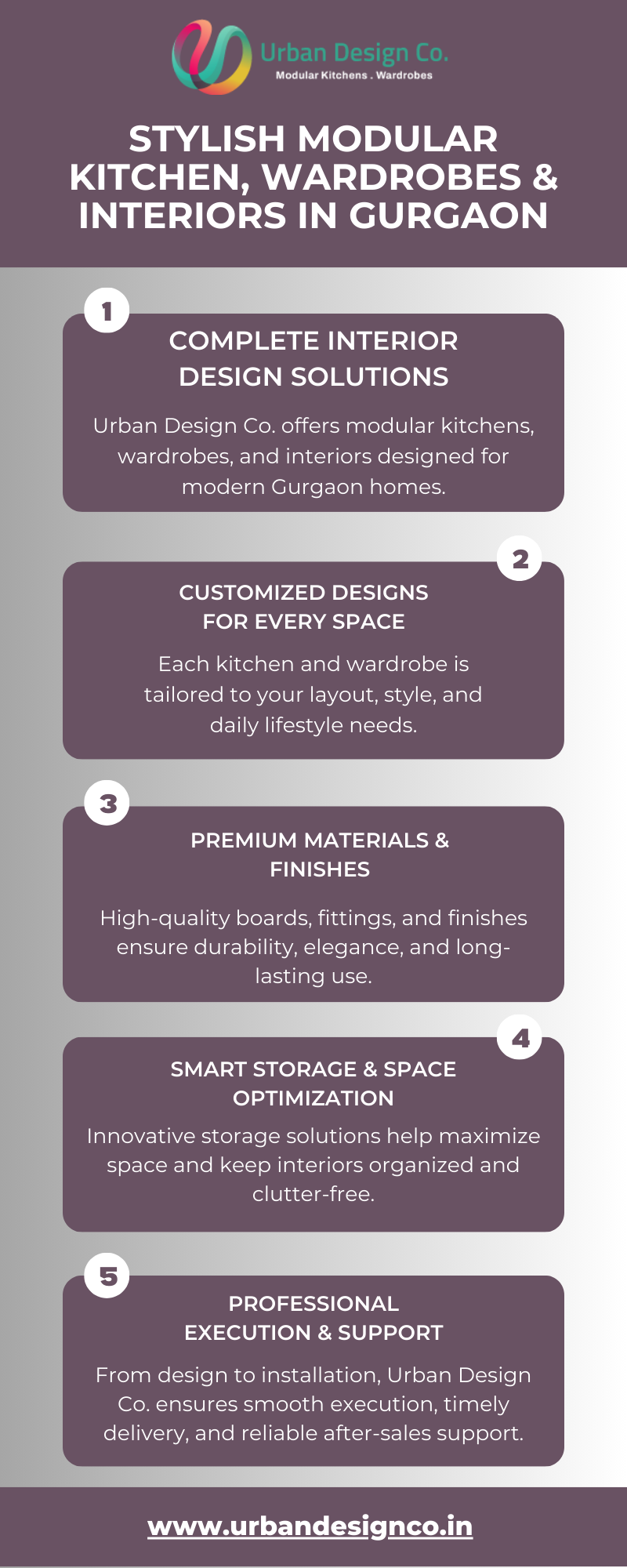 Discover premium Gurgaon modular kitchen wardrobes & interiors with Urban Design Co. Get customized designs, high-quality materials, smart storage solutions, and modern finishes for every space. Our expert team delivers stylish kitchens, functional wardrobes, and complete interior solutions with smooth execution, timely installation, and reliable support to transform your home into a beautiful, organized living space.