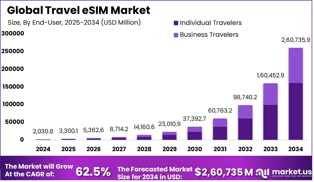 MARKET.USTravel eSIM MarketTravel eSIM Market is estimated to reach USD 2,60,735 Million By 2034, Riding on a Strong 62.5% CAGR throughout the forecast period.0 Comments 0 Shares 708 Views 0 Reviews -